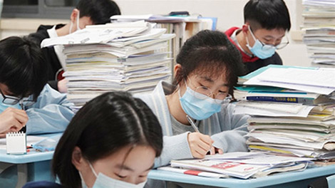 日復一日,每張課桌上都堆起了“書(shū)山”。