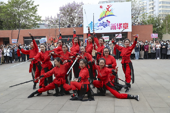 4月25日中午,新華社舉辦“乘風(fēng)破浪新華章”——第十六屆新華女性陽(yáng)光健身活動(dòng)。新華網(wǎng)員工表演的劍舞《出征》受到社內領(lǐng)導和觀(guān)眾一致好評。