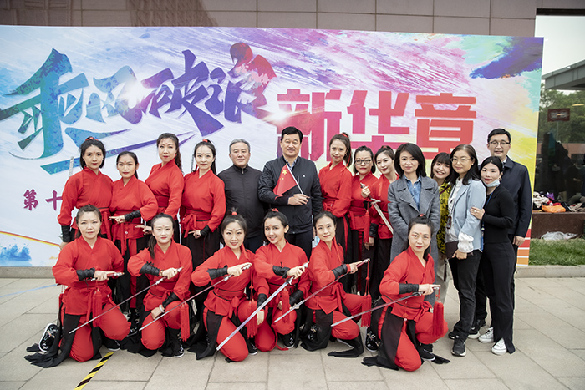 圖為新華網(wǎng)員工現場(chǎng)表演劍舞《出征》陳杰?攝