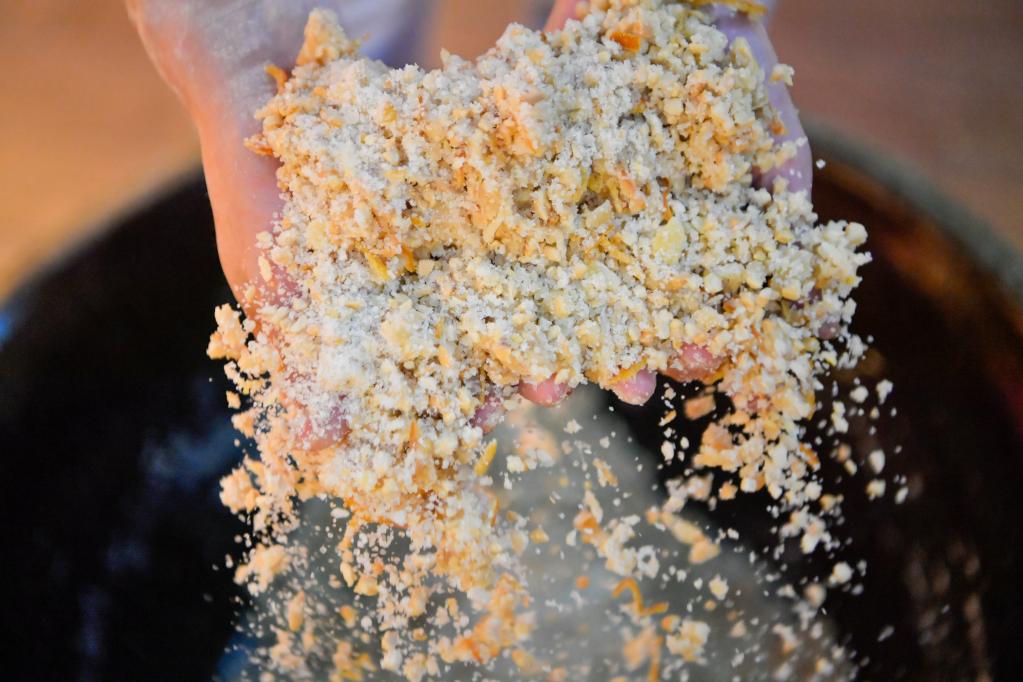 在天津桂發(fā)祥十八街麻花文化館,趙寶陽(yáng)為手工麻花制作準備餡料(6月8日攝)。