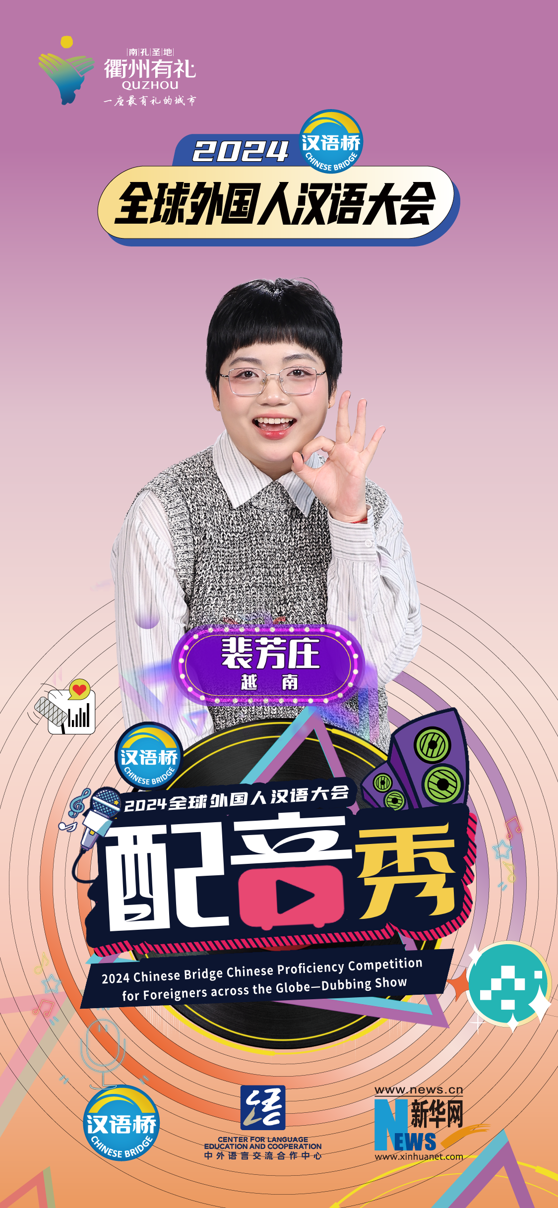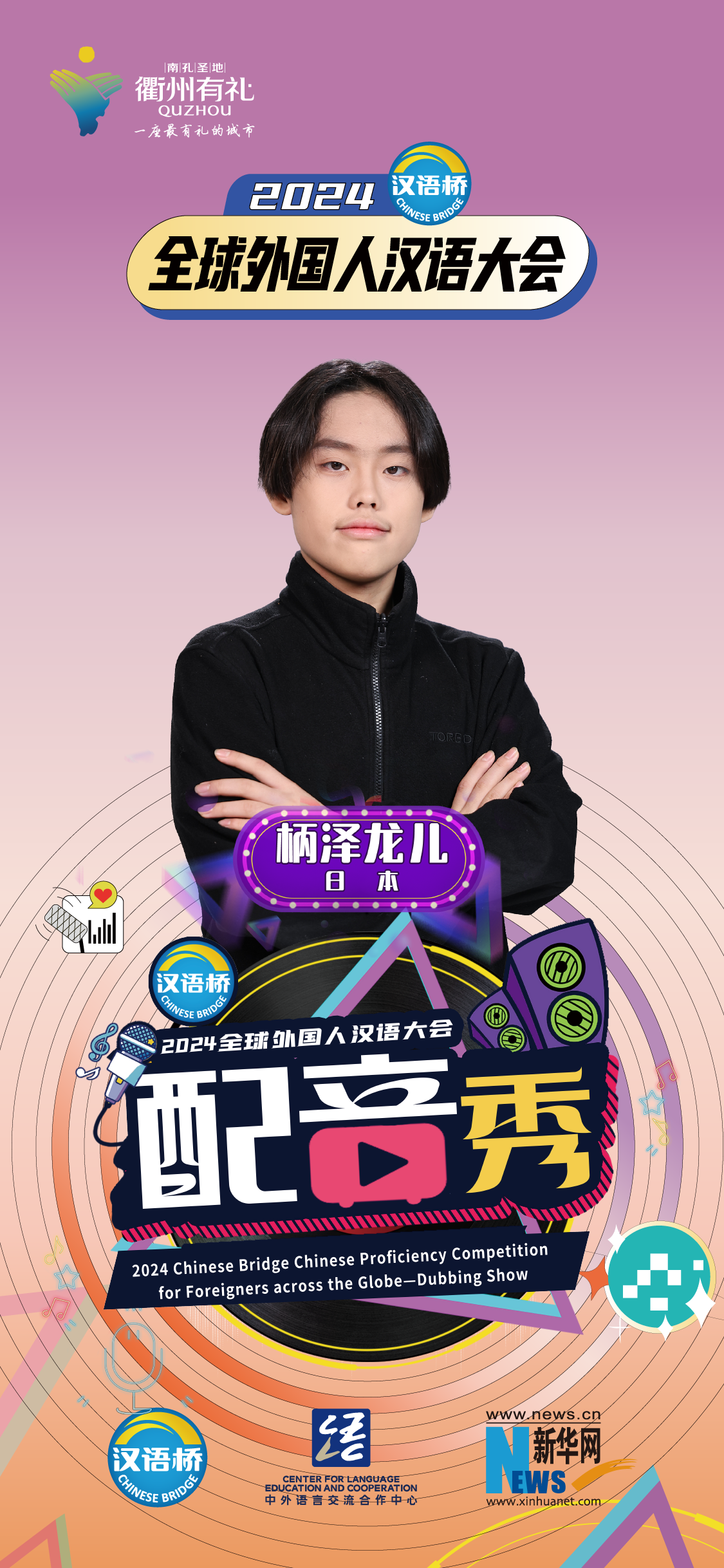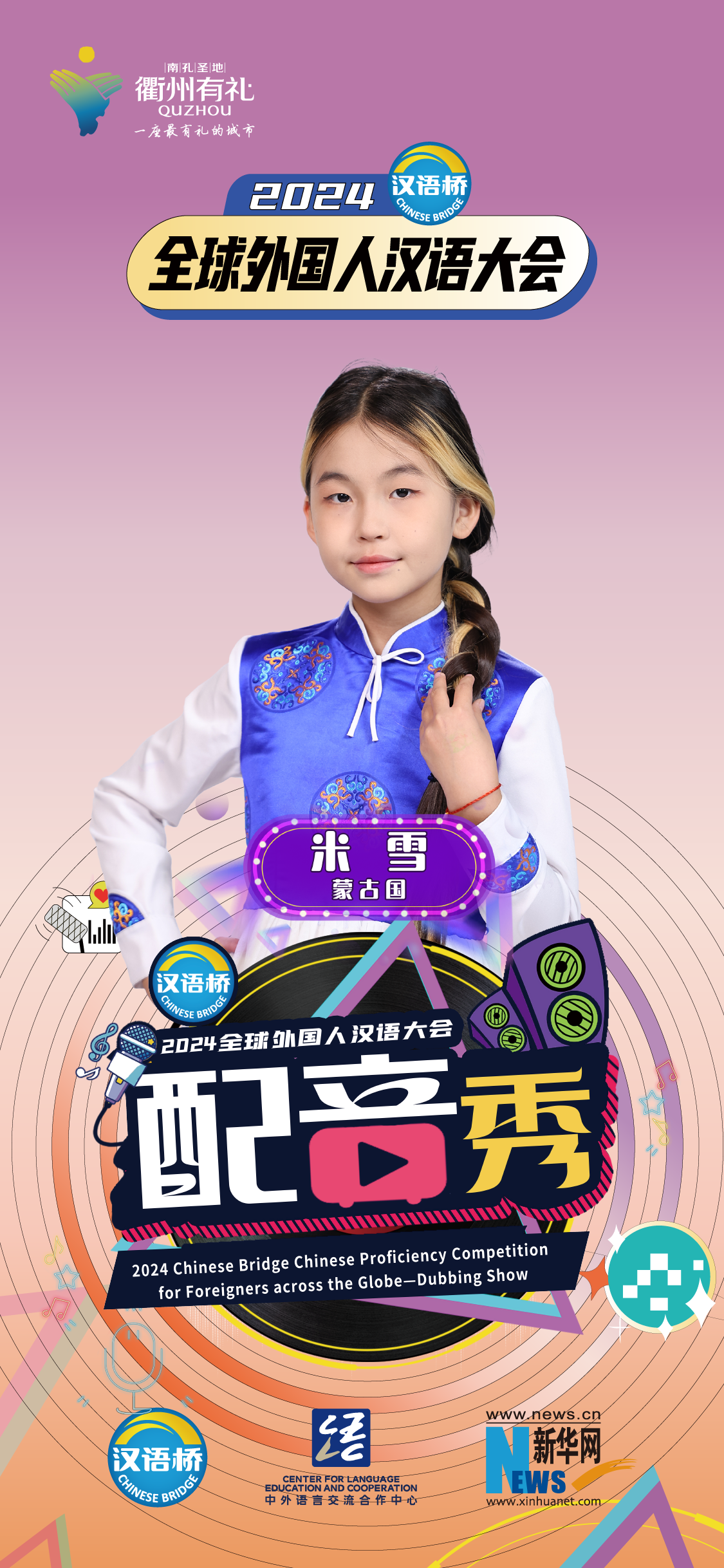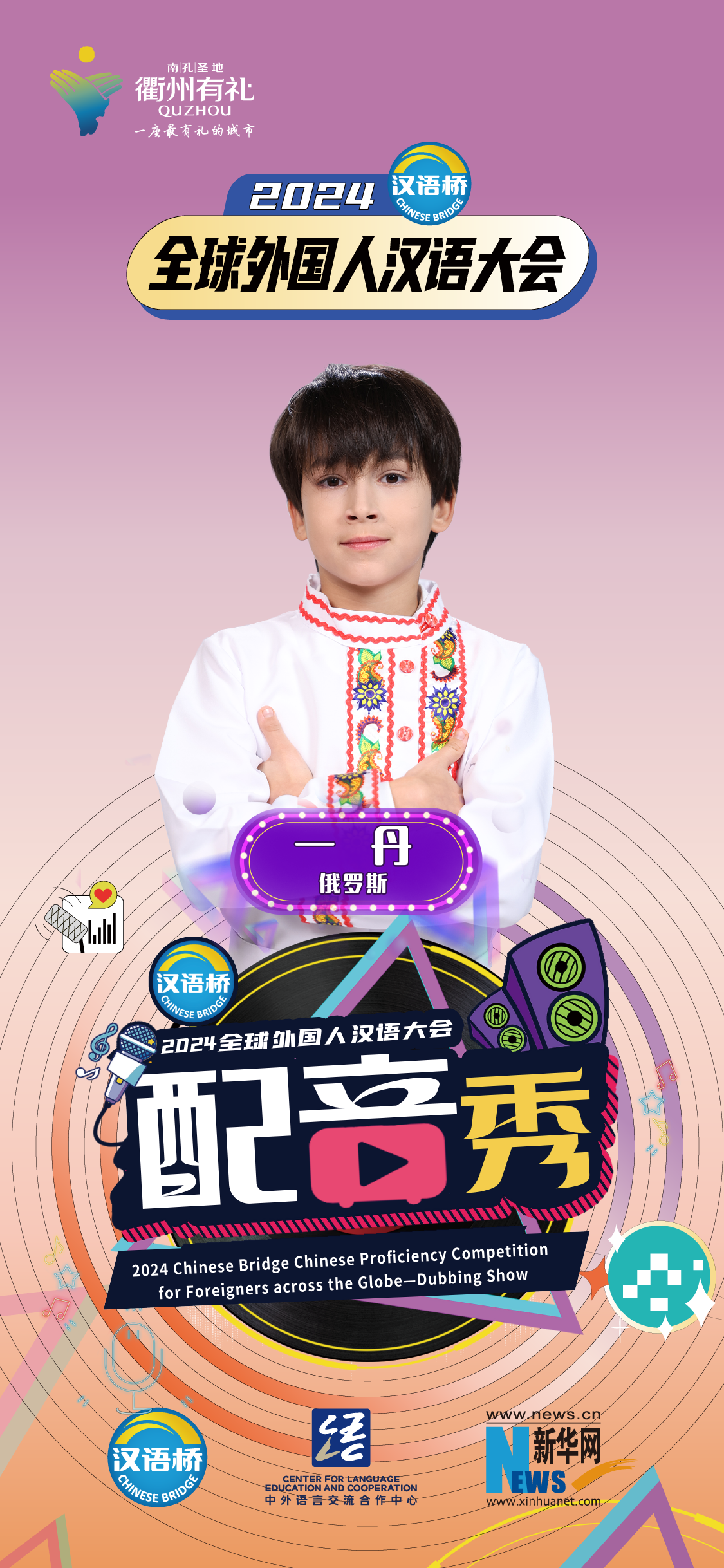 2024“漢語(yǔ)橋”全球外國人漢語(yǔ)大會(huì )配音秀中國賽區決賽暨頒獎儀式于12月19日-12月24日在浙江衢州舉辦。