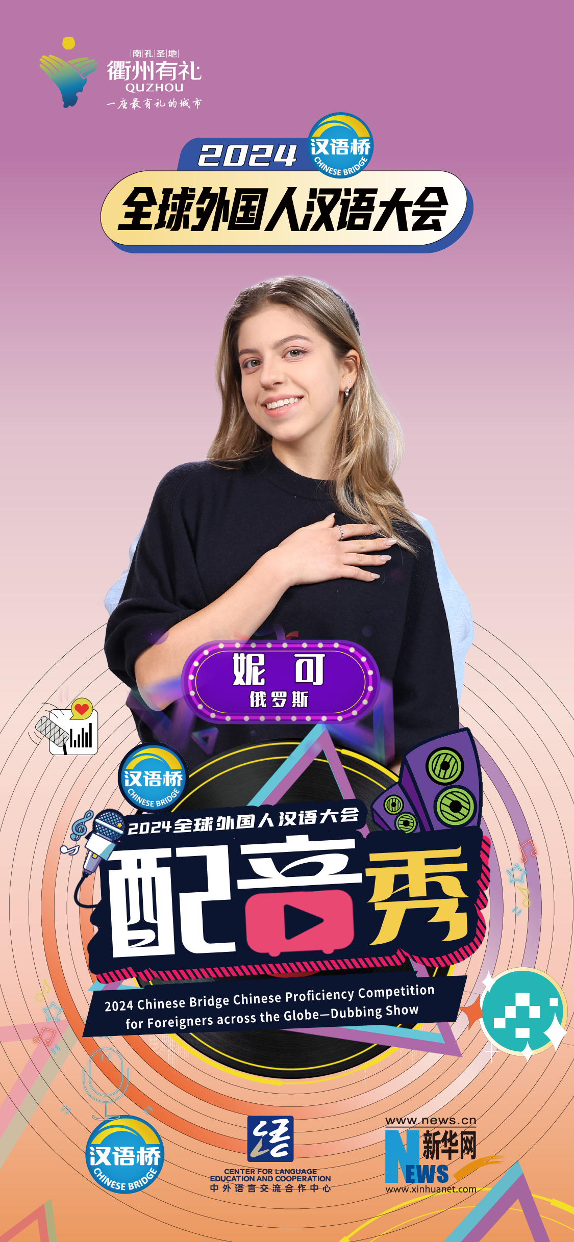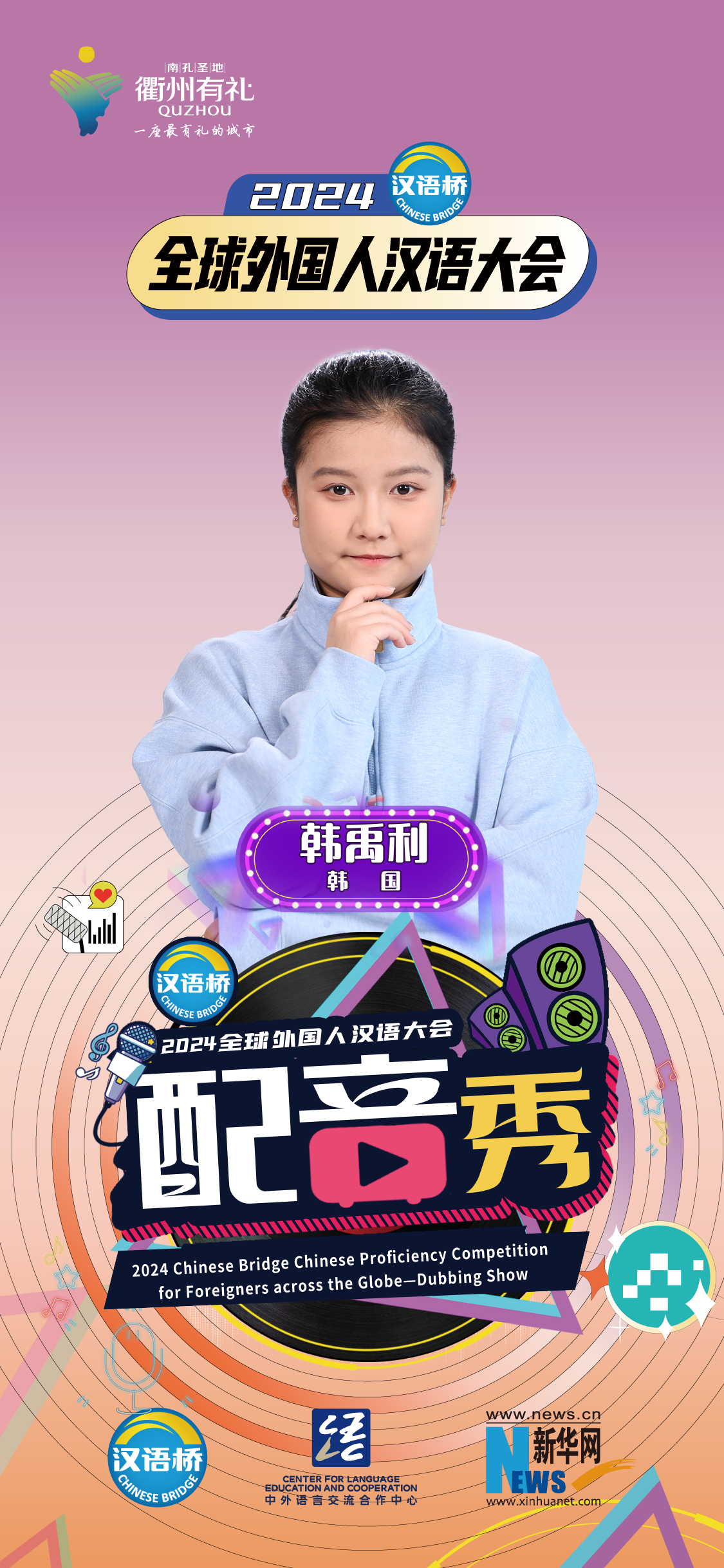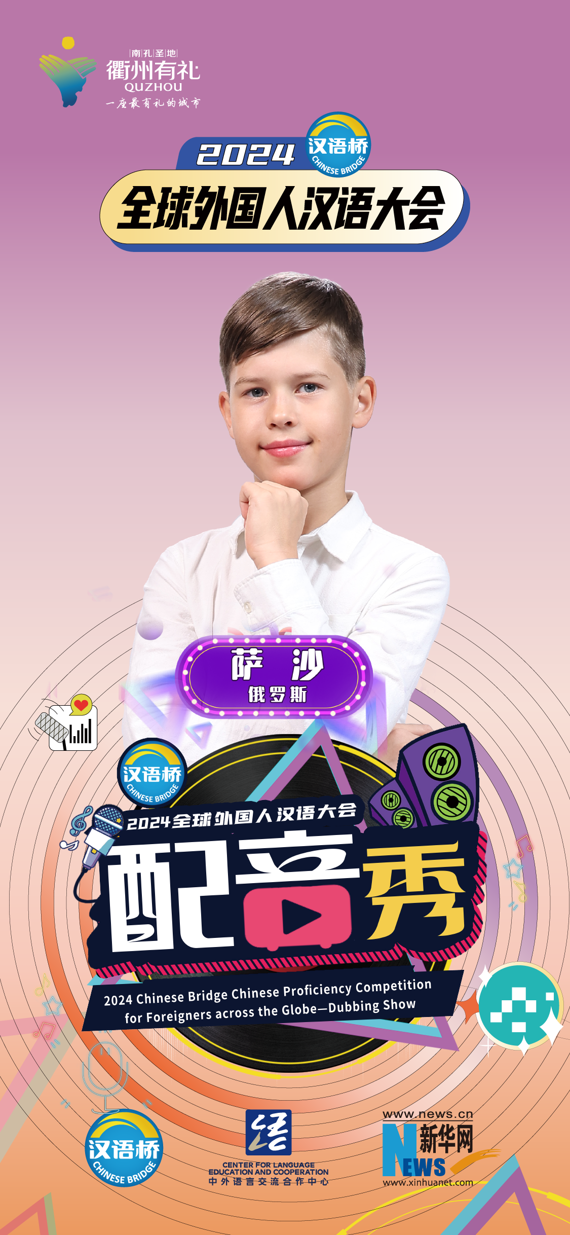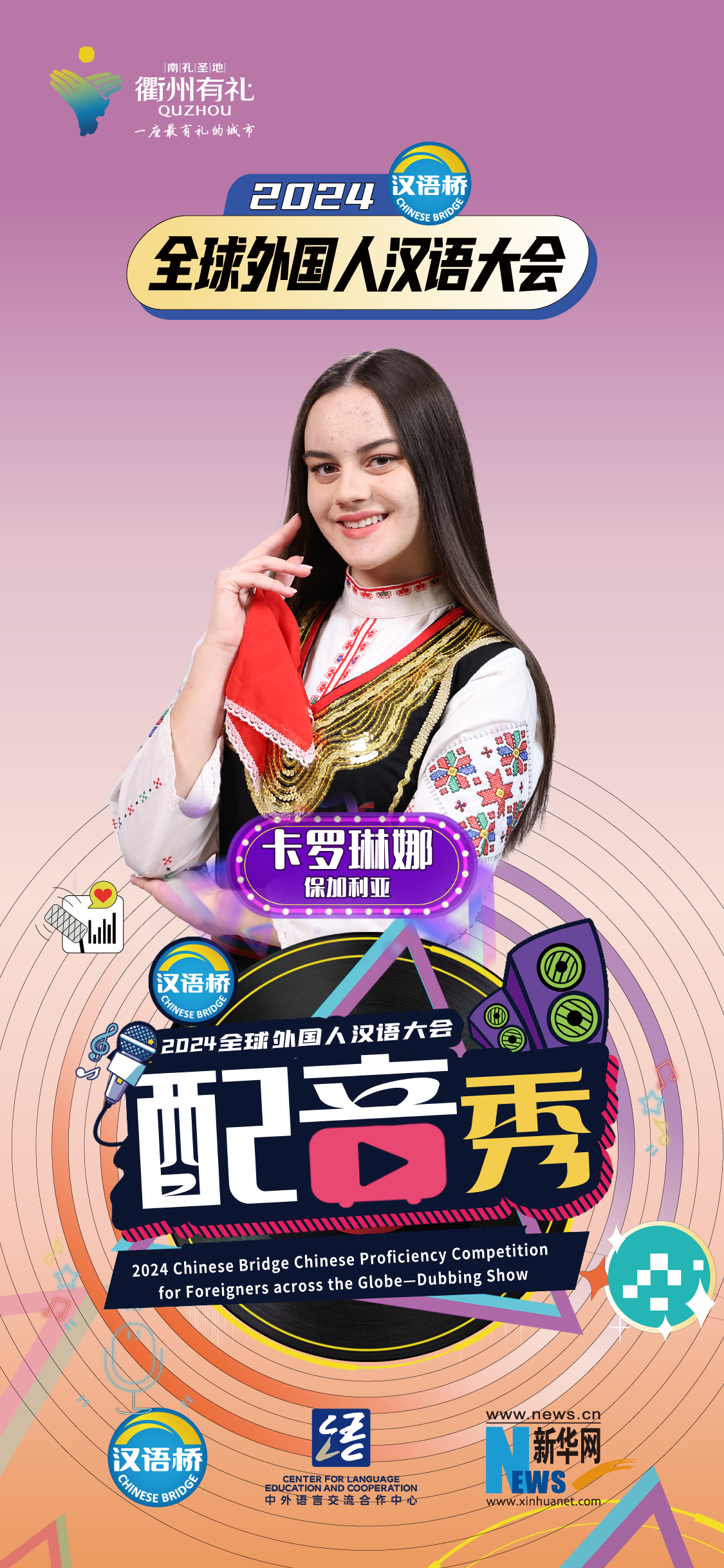 2024“漢語(yǔ)橋”全球外國人漢語(yǔ)大會(huì )配音秀中國賽區決賽暨頒獎儀式于12月19日-12月24日在浙江衢州舉辦。