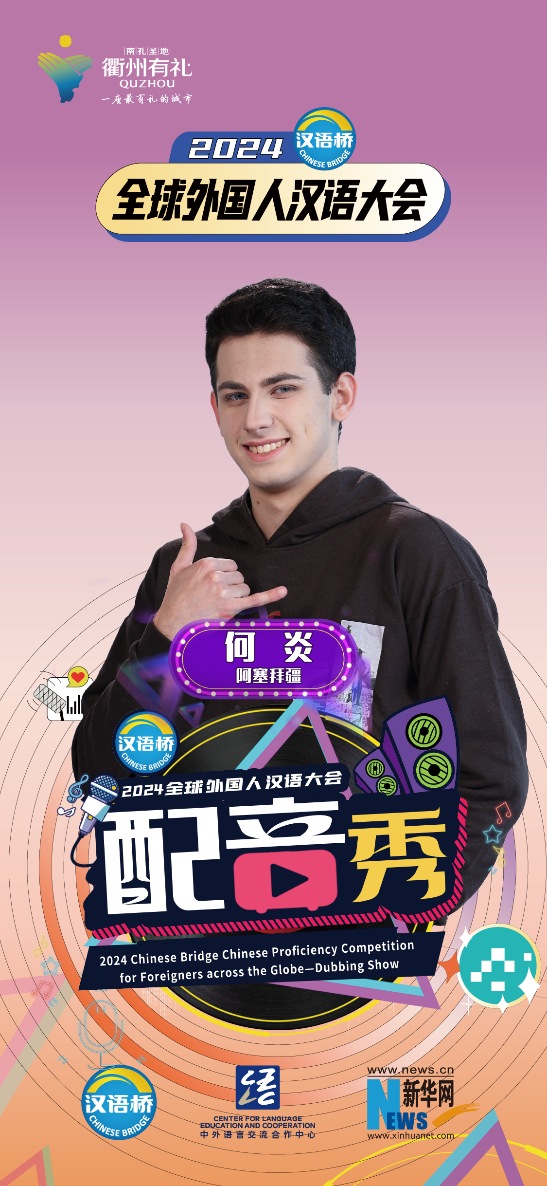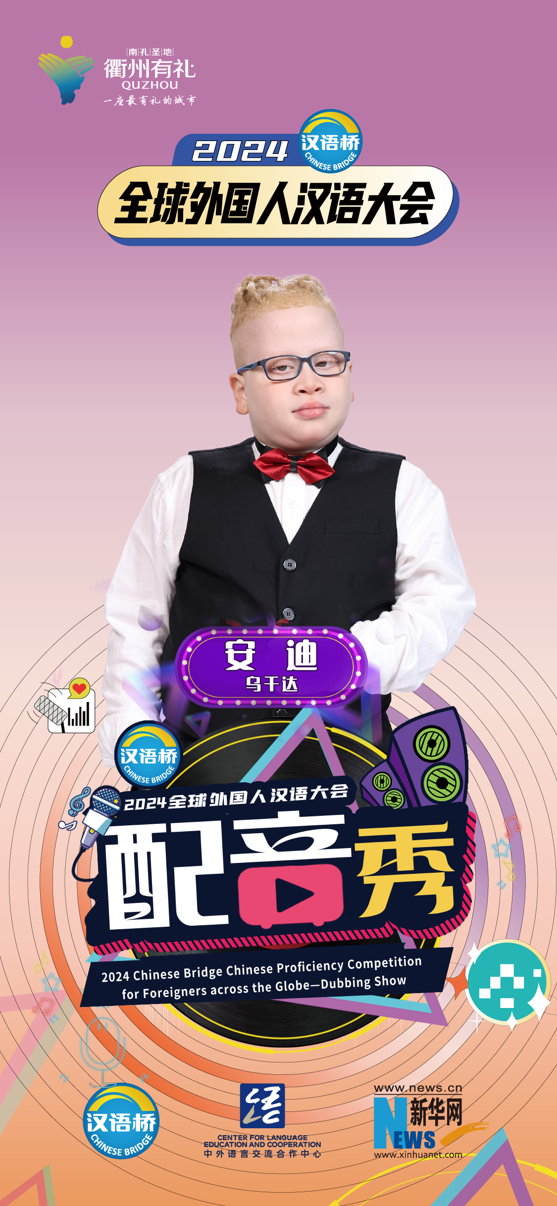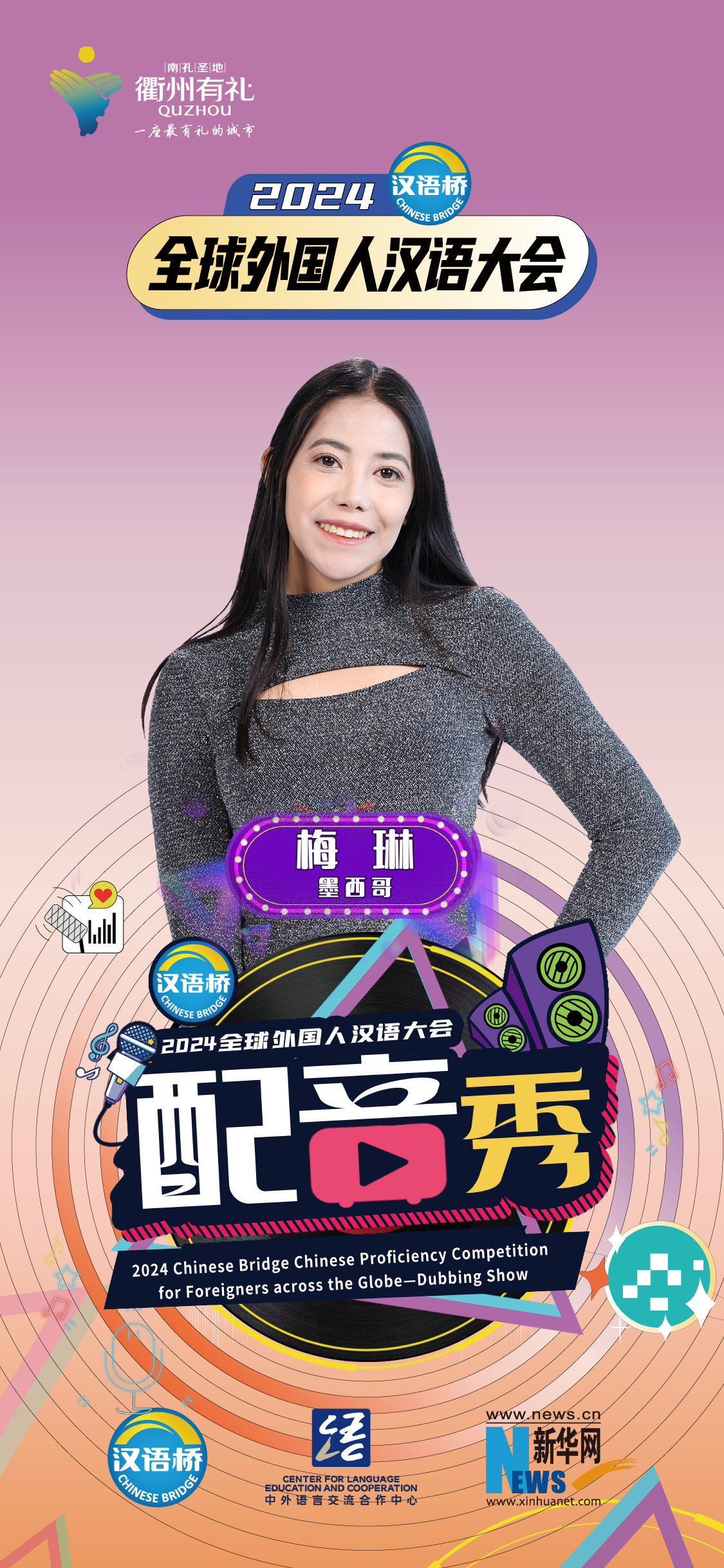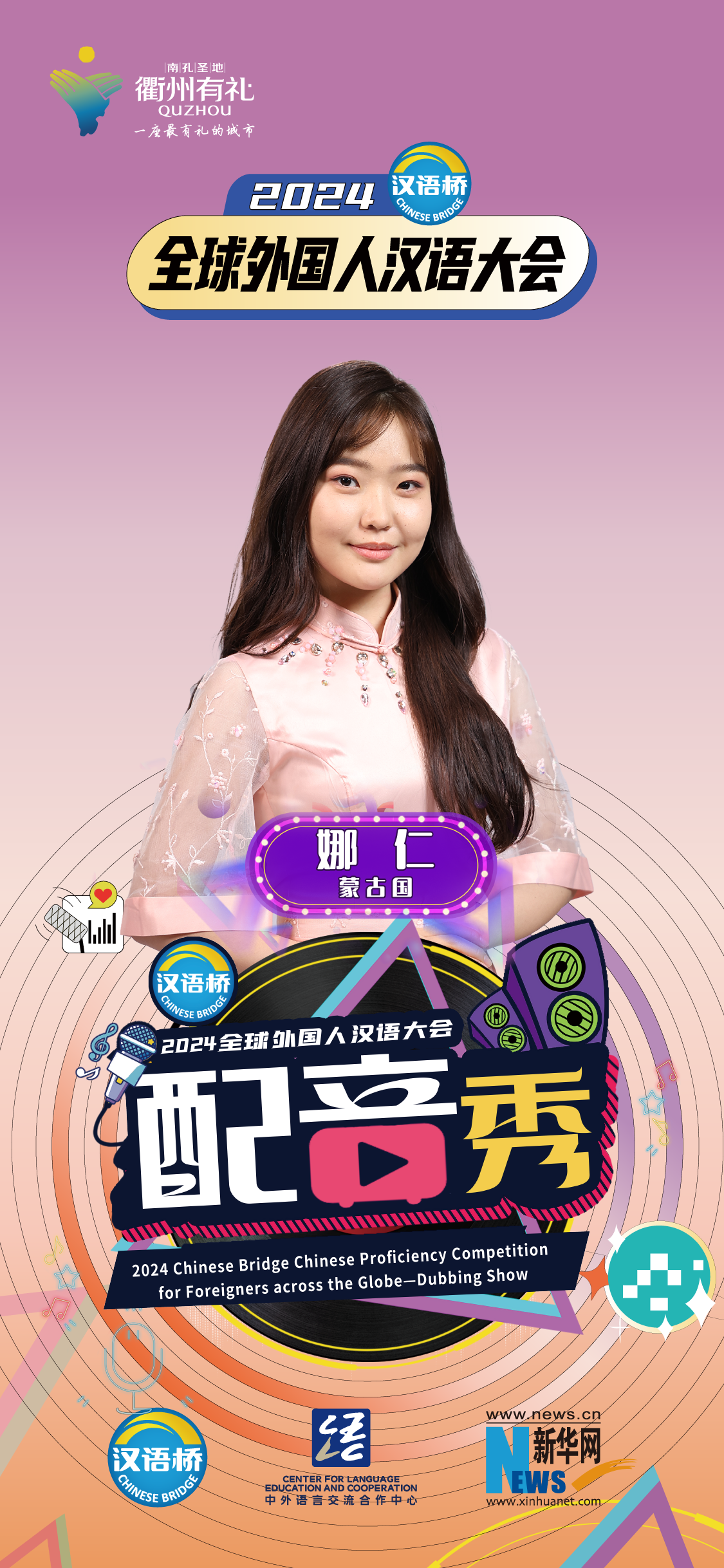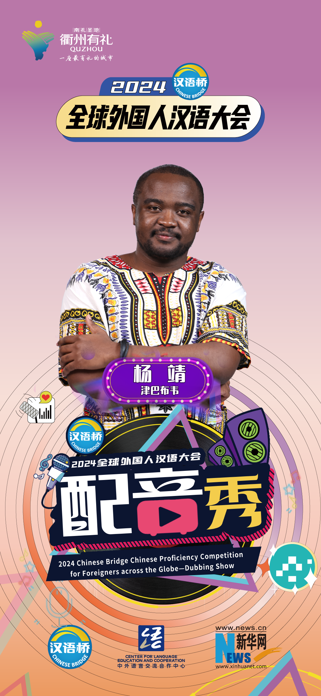 2024“漢語(yǔ)橋”全球外國人漢語(yǔ)大會(huì )配音秀中國賽區決賽暨頒獎儀式于12月19日-12月24日在浙江衢州舉辦。