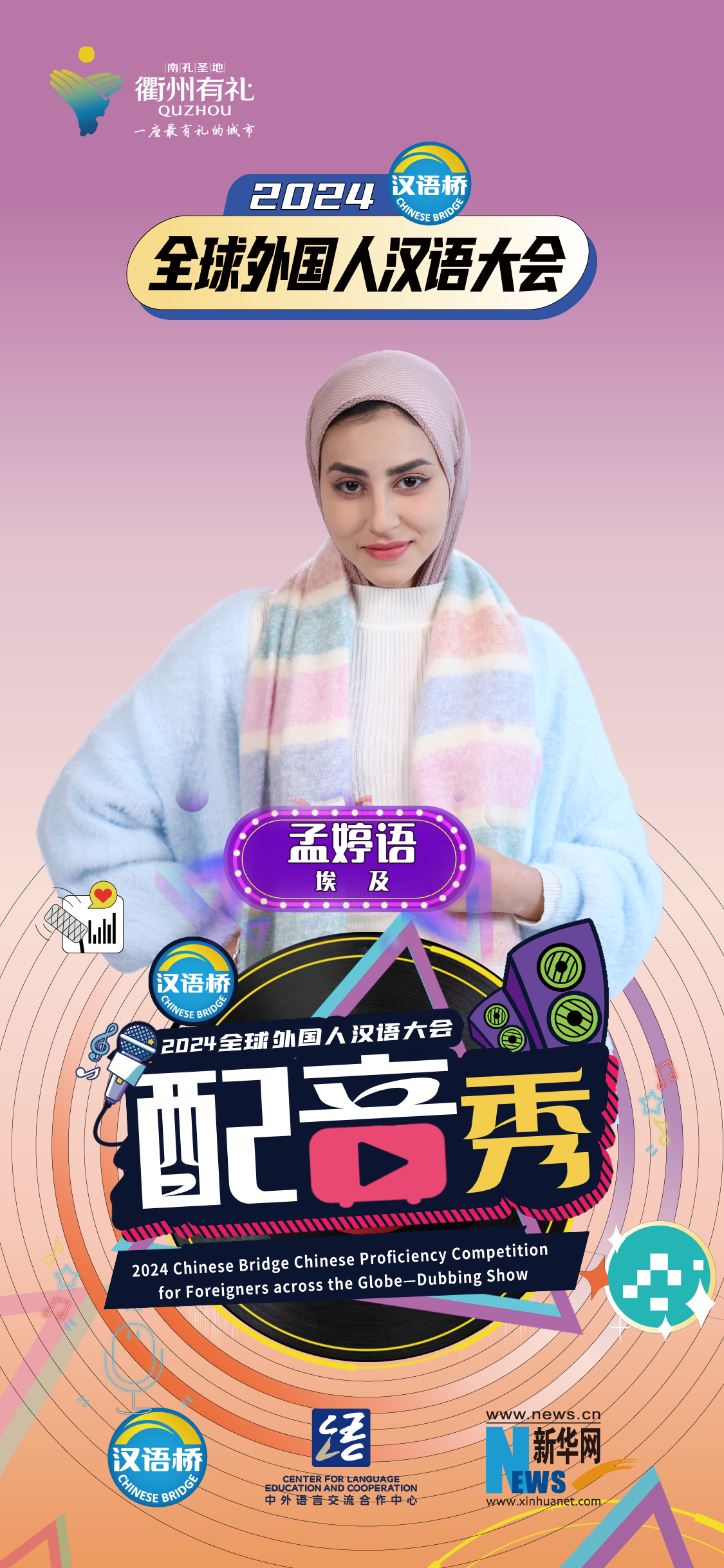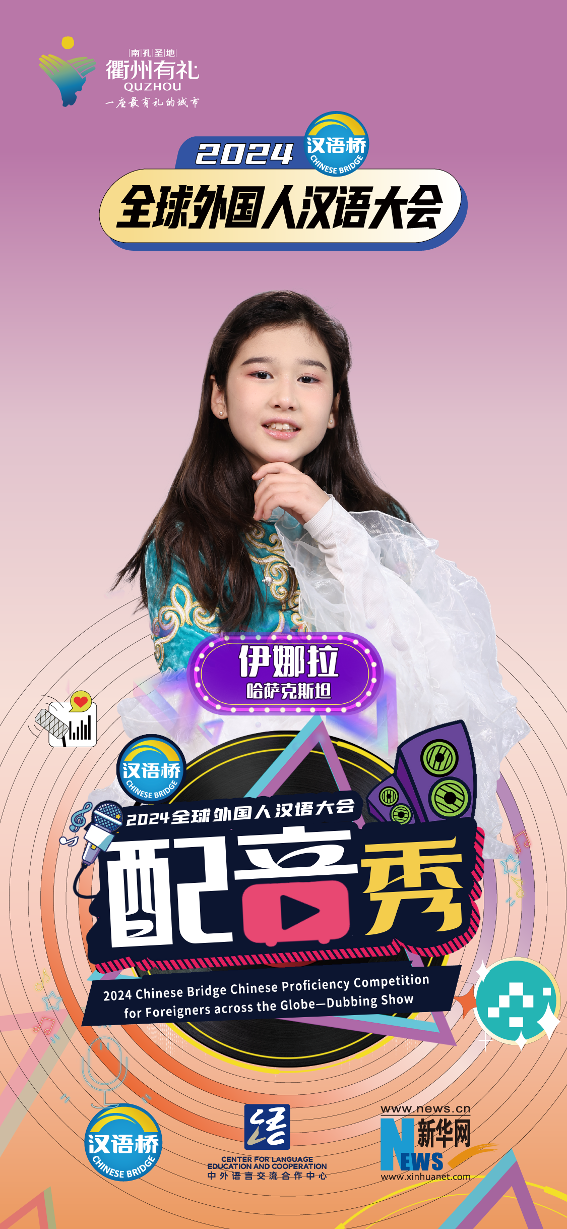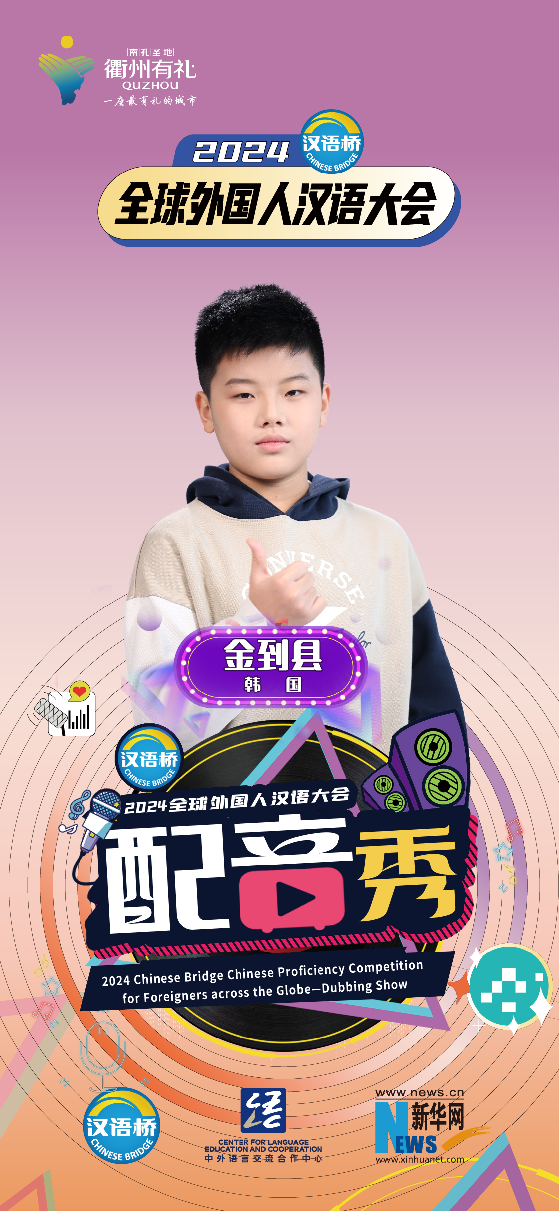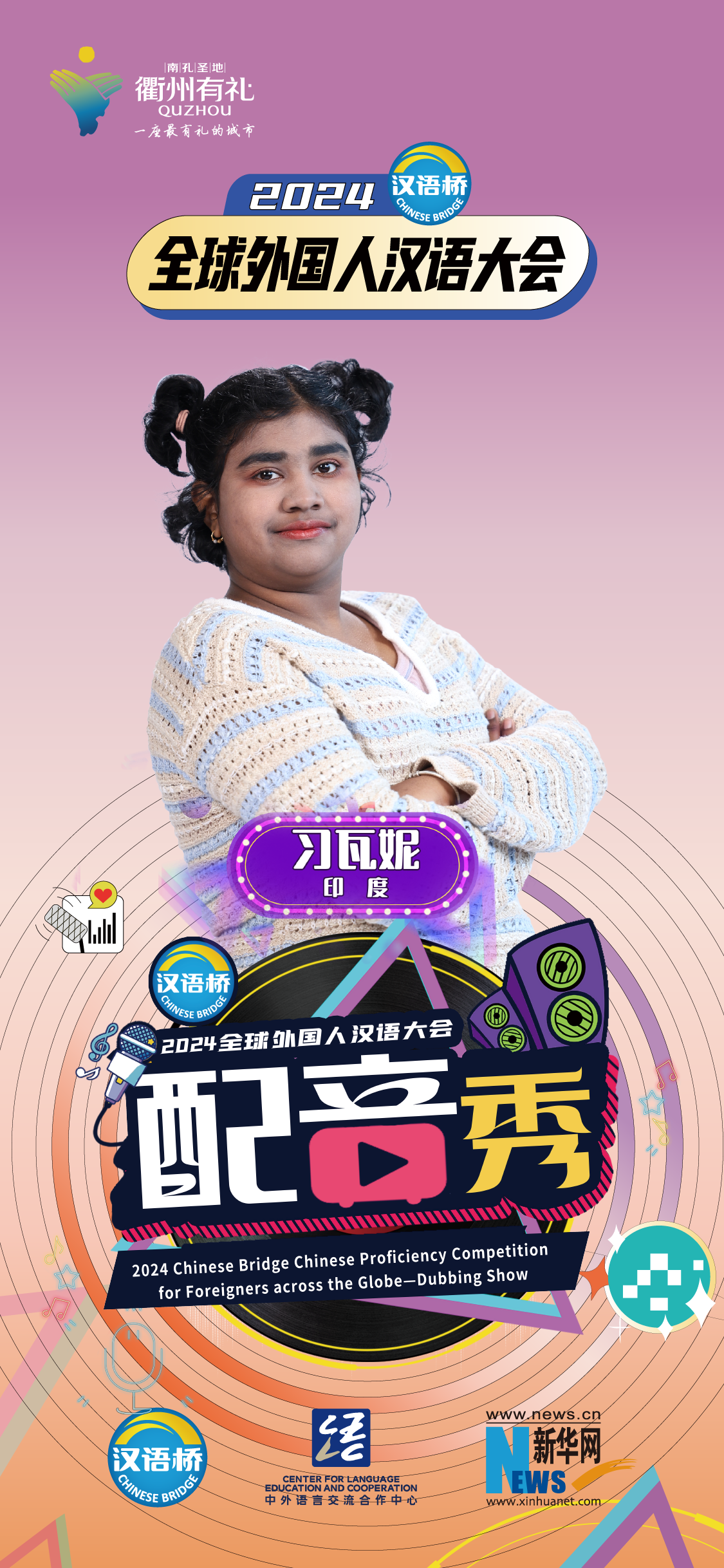 2024“漢語(yǔ)橋”全球外國人漢語(yǔ)大會(huì )配音秀中國賽區決賽暨頒獎儀式于12月19日-12月24日在浙江衢州舉辦。