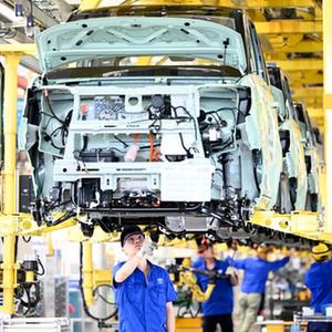 2021年8月12日,廣西柳州一家汽車(chē)企業(yè)的工人在新能源汽車(chē)生產(chǎn)線(xiàn)上忙碌。新華社發(fā)