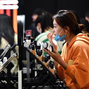 2022年1月3日,顧客在??谌赵聫V場(chǎng)免稅店選購化妝品。 新華社記者 郭程 攝