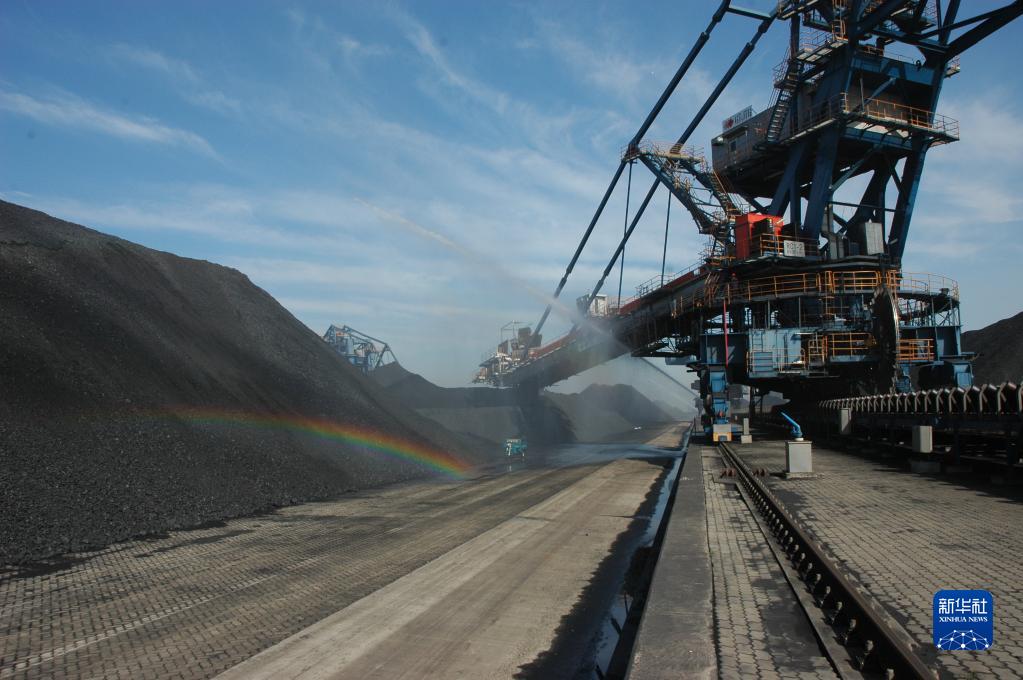 在河北省秦皇島柳村南站,裝船機在取料進(jìn)行裝船作業(yè)(資料照片)。新華社發(fā)