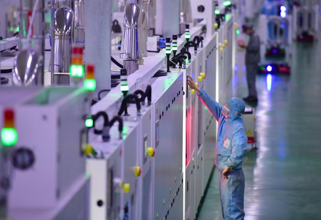 3月25日,工作人員在隆基單晶硅太陽(yáng)能電池工廠(chǎng)絲網(wǎng)印刷區工作。新華社記者邵瑞 攝