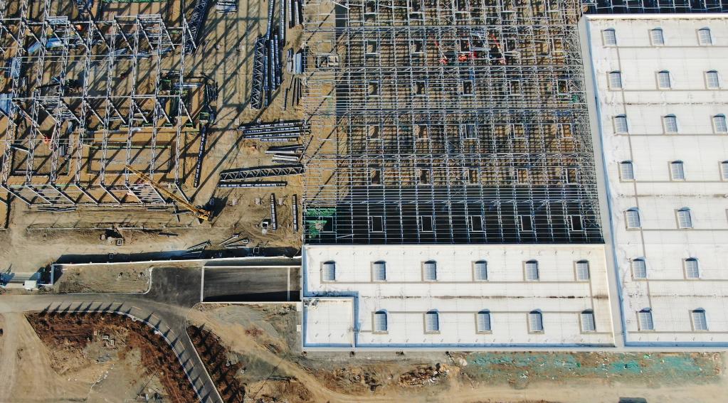 圖為2021年12月28日拍攝的建設中的華晨寶馬鐵西新工廠(chǎng)。(新華社記者楊青攝)