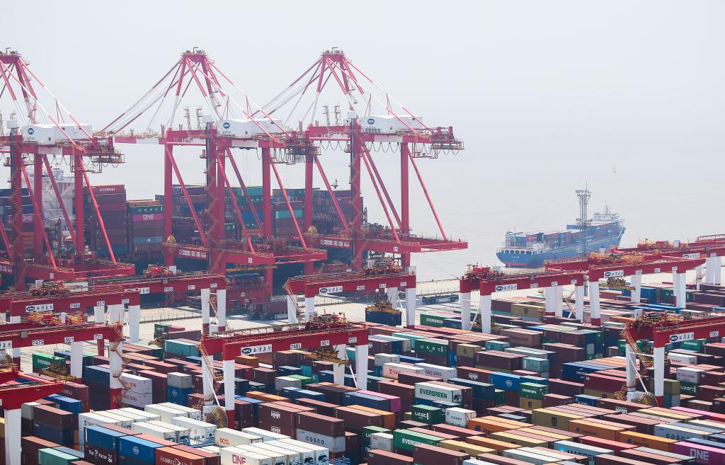 圖為5月17日拍攝的上海洋山深水港四期自動(dòng)化碼頭。(新華社記者丁汀攝)