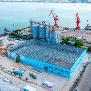 這是5月31日拍攝的三亞港南山港區海關(guān)查驗倉庫項目施工現場(chǎng)(無(wú)人機照片)。新華社發(fā)(馬征輝 攝)