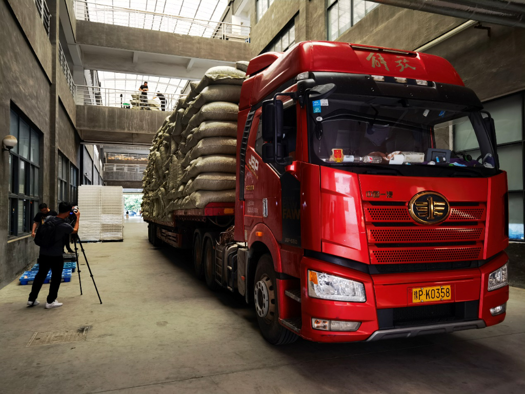 巴貝集團內,客戶(hù)來(lái)收購蠶繭的卡車(chē)正在裝貨。新華社記者 殷曉圣 攝
