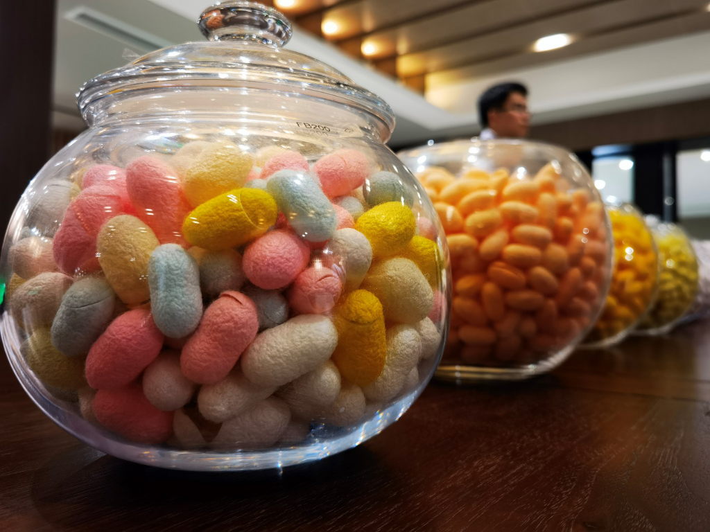 巴貝集團展廳內的彩色蠶繭。新華社記者 殷曉圣 攝
