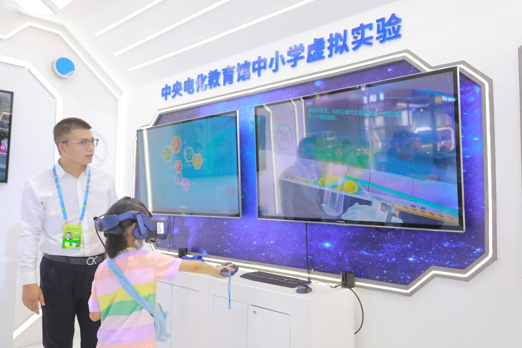 圖為第五屆數字中國建設峰會(huì )期間,小觀(guān)眾在現場(chǎng)體驗“虛擬實(shí)驗”。(受訪(fǎng)者供圖)