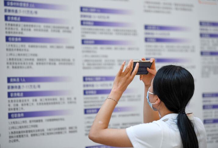 8月20日,求職者在招聘會(huì )現場(chǎng)拍攝招聘信息。 新華社記者 馮開(kāi)華 攝