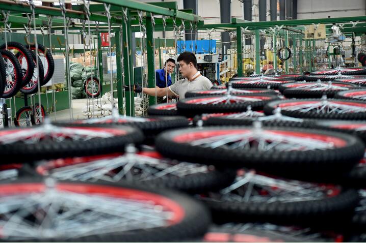 9月8日,在安徽省蚌埠市五河縣自行車(chē)產(chǎn)業(yè)園一家自行車(chē)生產(chǎn)企業(yè)內,工人在生產(chǎn)線(xiàn)上忙碌。 新華社記者 黃博涵 攝