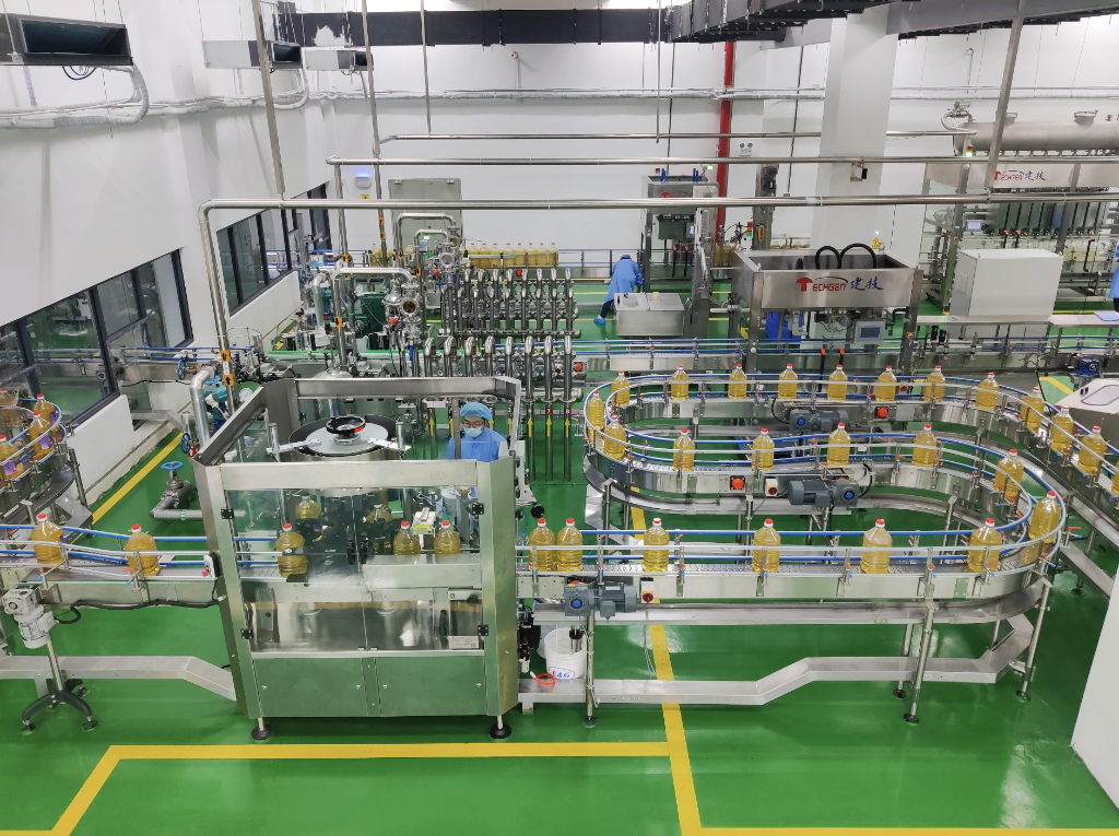 在舟山良海糧油有限公司年加工能力15萬(wàn)噸的小包裝油生產(chǎn)線(xiàn),來(lái)自巴西的大豆經(jīng)過(guò)預處理、浸出、油脂精煉等工序,全自動(dòng)加工成一箱箱的大豆油。
