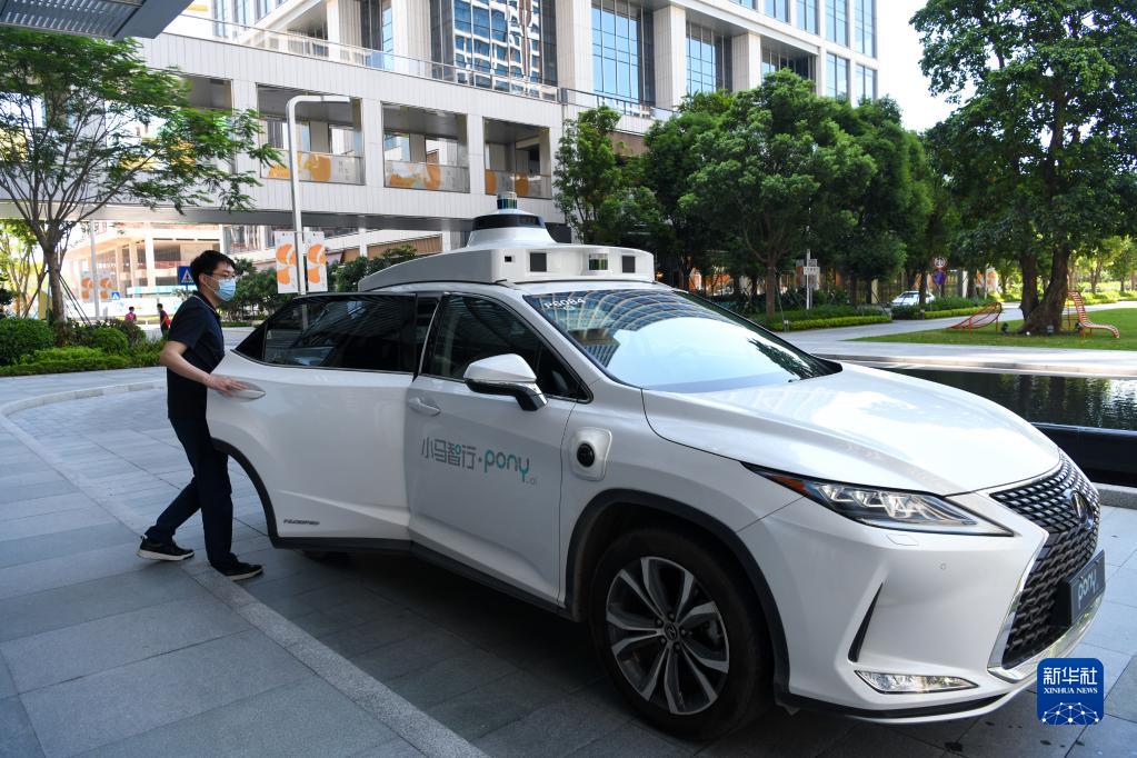 在深圳前海,一名乘客體驗乘坐小馬智行自動(dòng)駕駛汽車(chē)(2022年8月1日攝)。新華社記者 梁旭 攝