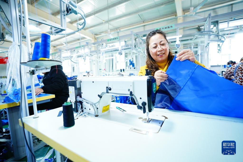 2022年12月26日,在河北省阜平縣大教廠(chǎng)村的春風(fēng)樹(shù)服飾有限公司手工業(yè)生產(chǎn)車(chē)間,村民在做校服。新華社發(fā)(李秀芹 攝)