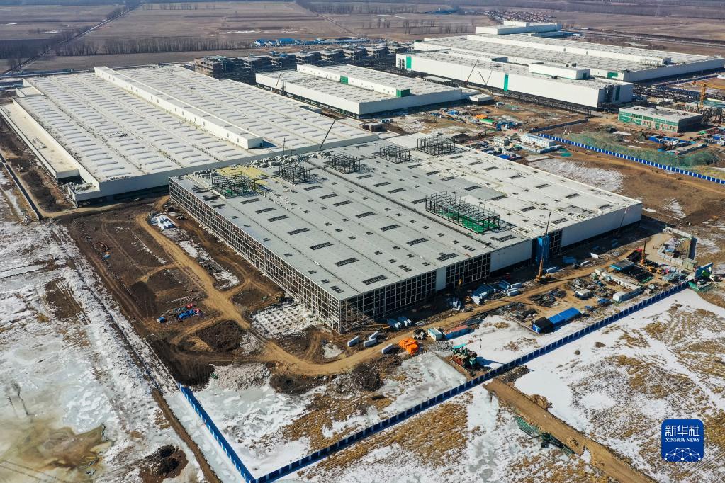 工人在奧迪一汽新能源項目建設現場(chǎng)施工(1月31日攝,無(wú)人機照片)。新華社發(fā) (王勐攝)