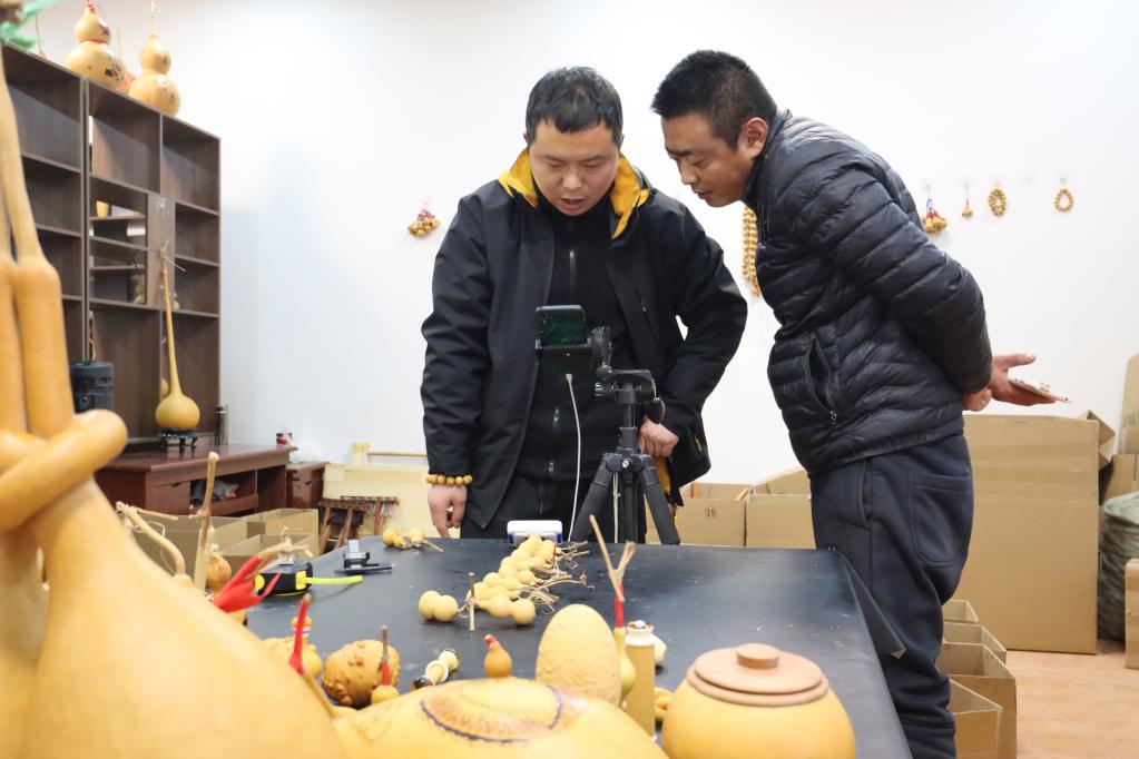 村民在直播賣(mài)葫蘆。新華社記者張力元 攝
