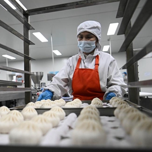 在天津利達糧油有限公司的速凍面食生產(chǎn)車(chē)間,多條食品深加工的生產(chǎn)線(xiàn)同時(shí)運行,顯示大屏實(shí)時(shí)播放著(zhù)蒸制、速凍等生產(chǎn)情況,自動(dòng)化產(chǎn)線(xiàn)的加持下,速凍面食一天的綜合產(chǎn)量較之前提高了3倍。