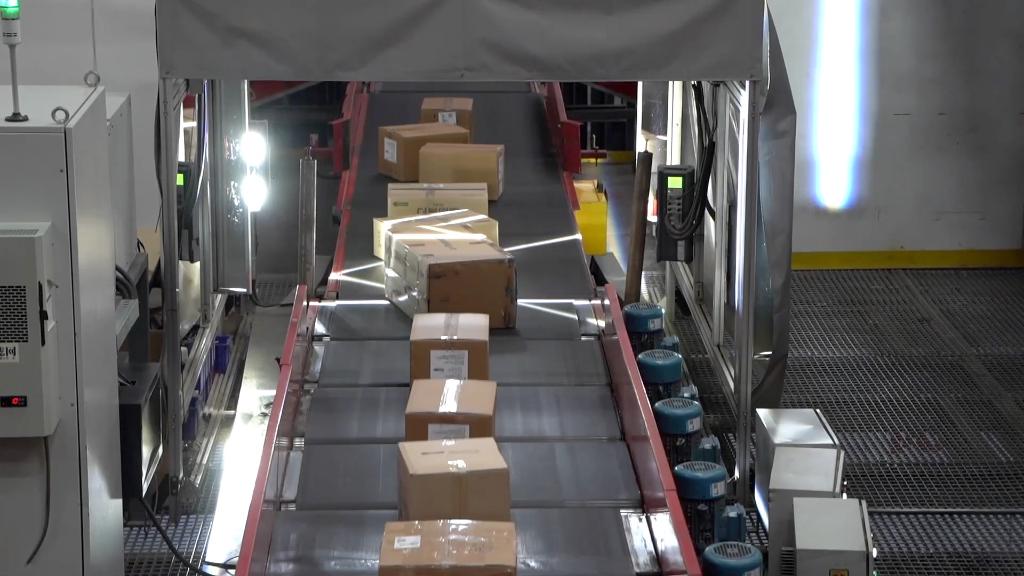 場(chǎng)站中幾十噸級的大貨車(chē)往來(lái)不停,一件件來(lái)自全國各地的大件貨物被卸在傳送帶上等待下一步分揀。這樣的情景在順豐天津大件中轉場(chǎng)上,時(shí)刻都在上演著(zhù)。