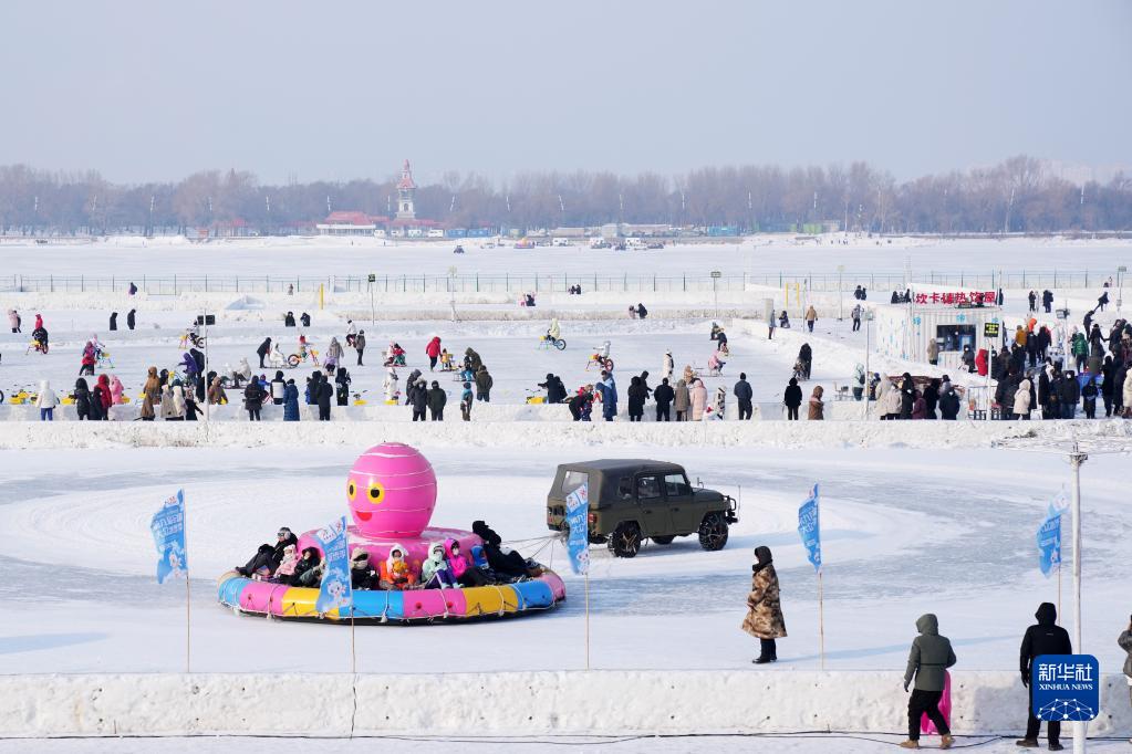 在黑龍江省哈爾濱松花江冰雪嘉年華園區,游客在體驗冰雪娛樂(lè )項目(1月22日攝)。新華社記者 王建威 攝
