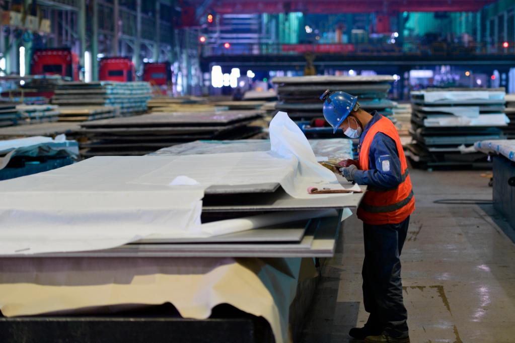 3月1日,在甘肅酒鋼集團宏興鋼鐵股份有限公司不銹鋼分公司,工作人員查看產(chǎn)品信息。新華社記者范培珅 攝