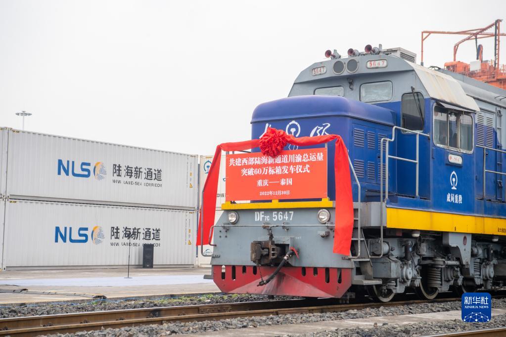 2022年12月30日,西部陸海新通道鐵海聯(lián)運班列在重慶團結村中心站等待發(fā)車(chē)。新華社記者 唐奕 攝