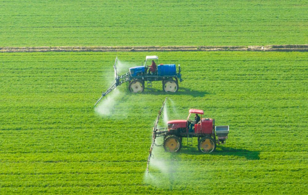 2月28日,在江蘇省海安市大公鎮王院村,村民駕駛植保機在小麥田間進(jìn)行噴灑藥物作業(yè)(無(wú)人機圖片)。新華社發(fā)(翟慧勇 攝)
