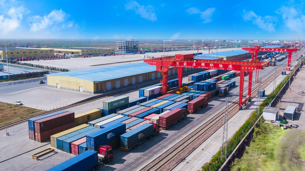 春末夏初,在位于河北省石家莊市高邑縣的石家莊國際陸港,運輸作業(yè)正在有條不紊地進(jìn)行。滿(mǎn)載著(zhù)日用品、箱包、工業(yè)配件等商品的集裝箱有序碼放在作業(yè)場(chǎng)上,等待著(zhù)被裝車(chē)運送至不同國家和地區。