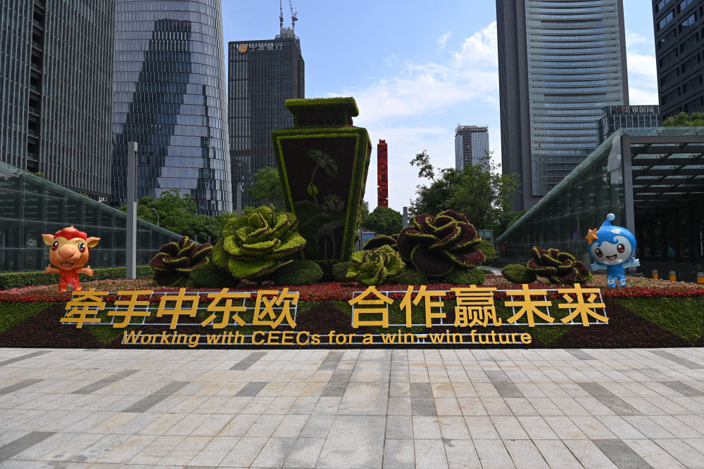 在寧波國際會(huì )展中心附近拍攝的第三屆中國—中東歐國家博覽會(huì )暨國際消費品博覽會(huì )綠化景觀(guān)造型(5月16日攝)。新華社記者 黃宗治 攝