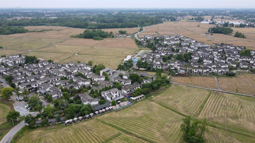 這是5月11日拍攝的崇州市五星村一角(無(wú)人機照片)。新華社記者 胥冰潔 攝