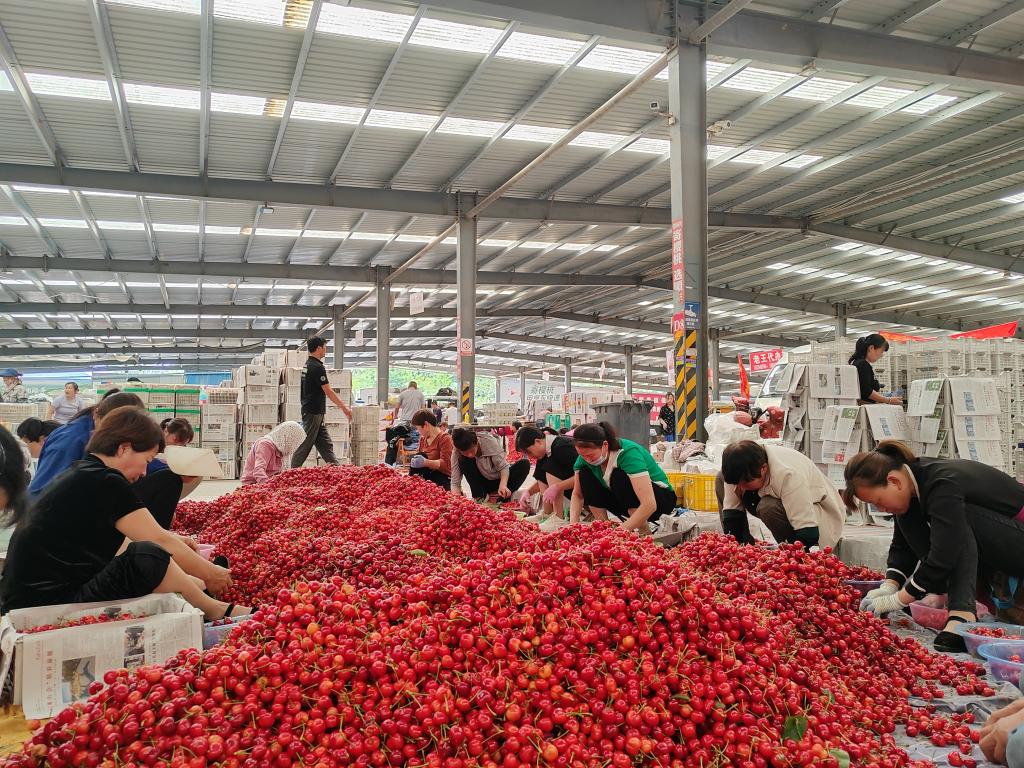 近年來(lái),市場(chǎng)管理方用新思維和新理念運營(yíng)管理大櫻桃市場(chǎng),品控和交易都邁上新臺階?!拔覀兿仁墙ㄆ鹄滹L(fēng)庫,使大櫻桃能夠在運輸中保持較高品質(zhì)。還明確劃分了交易區、分揀區、快遞區等功能區?!惫谙蛴浾呓忉?zhuān)I(mǎi)賣(mài)雙方確定交易意向后,產(chǎn)品迅速進(jìn)入分揀區進(jìn)行分揀,分揀后再由順豐、中國郵政等公司設置的快遞點(diǎn)進(jìn)行打包裝箱,整個(gè)流程速度越來(lái)越快。