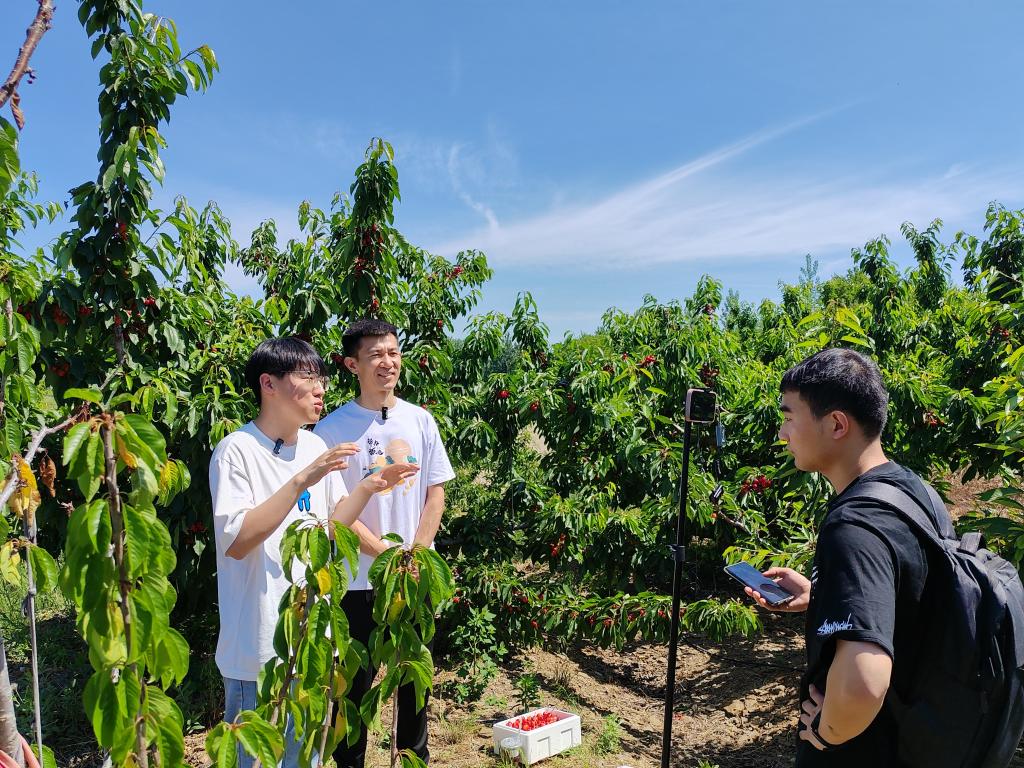 近年來(lái),合作社還積極拓展電商、直播帶貨等銷(xiāo)售渠道。記者爬上南莊村的東山,在掛滿(mǎn)果實(shí)的櫻桃樹(shù)間走訪(fǎng)時(shí),恰逢煙臺當地一直播團隊給濰坊電視臺做直播帶貨節目。兩名年輕小伙背靠櫻桃樹(shù),向直播鏡頭前的觀(guān)眾介紹目前果實(shí)的狀況。