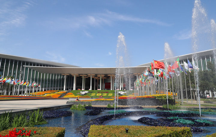 這是2022年10月24日拍攝的國家會(huì )展中心(上海)南廣場(chǎng)。新華社記者 方喆 攝