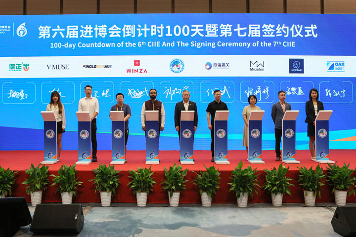 7月26日,第六屆進(jìn)博會(huì )倒計時(shí)100天暨第七屆簽約儀式在國家會(huì )展中心(上海)舉行。新華社記者 辛夢(mèng)晨 攝
