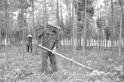 農戶(hù)在建甌市東峰鎮一處竹林里鋤草。記者張華迎 攝