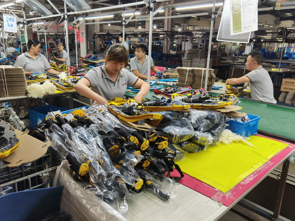 新華社寧波9月3日電(記者顧小立、邱世杰)走進(jìn)浙江省寧波市寧??h深甽鎮興達旅游用品有限公司的生產(chǎn)車(chē)間,剛被搬下流水線(xiàn)的運動(dòng)杖在操作臺上堆得滿(mǎn)滿(mǎn)當當,工人們正在進(jìn)行最后的組裝檢查,將所有貨品打包完成后,發(fā)往客戶(hù)手中。