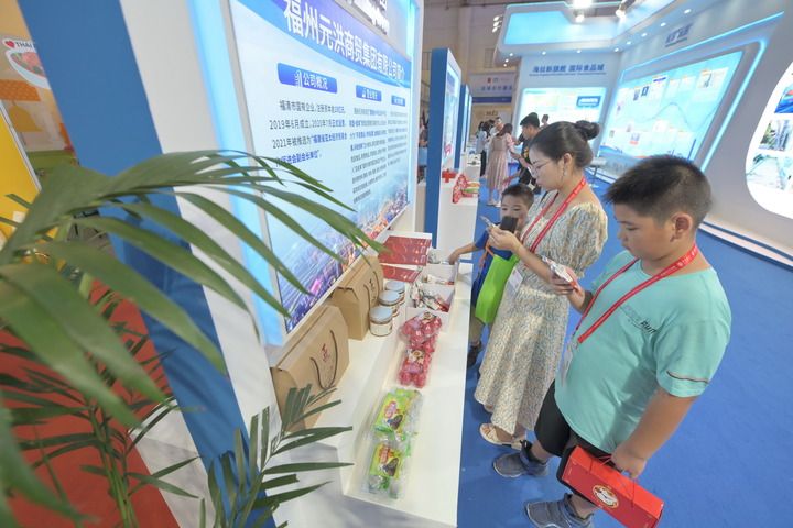 9月9日,參觀(guān)者在第二十三屆中國國際投資貿易洽談會(huì )中國印尼“兩國雙園”展區選購商品。新華社記者 林善傳 攝