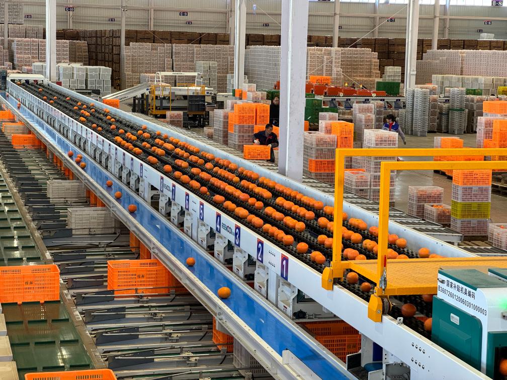 圖為果品采后技術(shù)處理設備正在分揀贛南臍橙。新華社記者陳柱佐 攝
