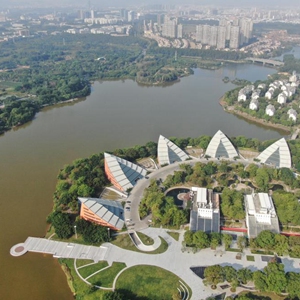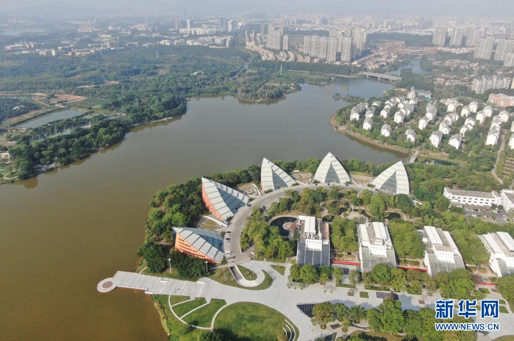 這是2021年4月21日無(wú)人機拍攝的東莞松山湖風(fēng)景。大灣區綜合性國家科學(xué)中心先行啟動(dòng)區(松山湖科學(xué)城)2021年4月22日在廣東省東莞市全面啟動(dòng)。新華社記者 鄧華 攝