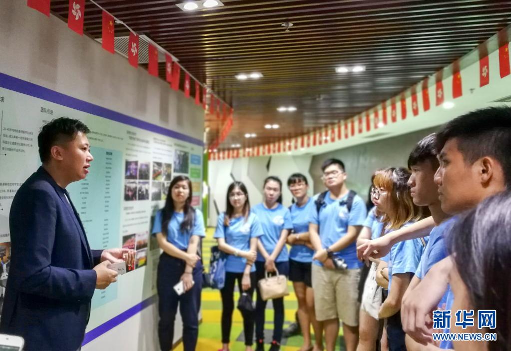 2017年8月,在內地創(chuàng )業(yè)的香港青年陳升(左)在深圳南山智園接待香港大學(xué)生暑假交流計劃的學(xué)員時(shí),介紹基地發(fā)展情況。新華社發(fā)