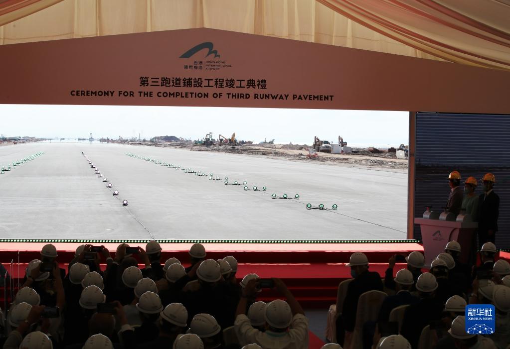 新華社香港9月7日電? 香港國際機場(chǎng)第三跑道的鋪設工程近日完成,香港機場(chǎng)管理局于7日舉行竣工典禮,這是香港國際機場(chǎng)三跑道系統項目的重要里程碑。