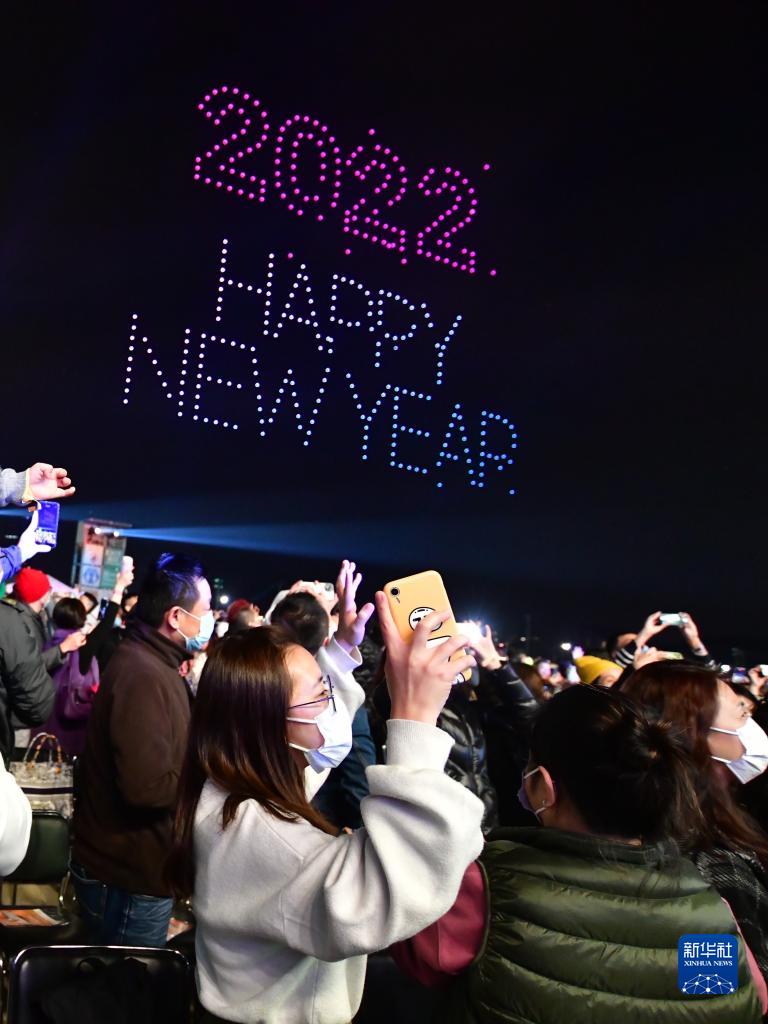 2022年1月1日,無(wú)人機在維多利亞港空中表演。新華社記者 呂小煒 攝