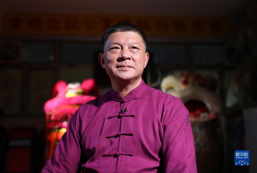 香港蔡李佛胡旭春國術(shù)醒獅會(huì )會(huì )長(cháng)胡旭春接受記者采訪(fǎng)(1月20日攝)。新華社記者 李鋼 攝