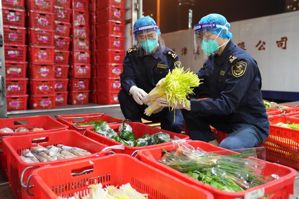 2月11日,文錦渡海關(guān)在查驗供港蔬菜。新華社發(fā)(資料圖片)