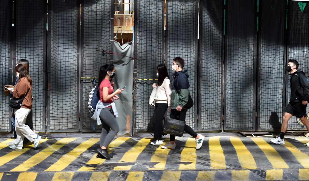 3月1日,在香港中環(huán),市民佩戴口罩出行。新華社記者 盧炳輝 攝