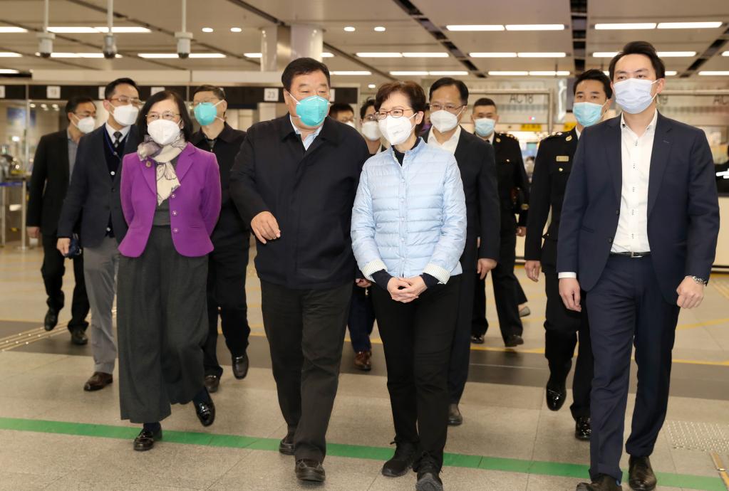 2月28日,香港特區行政長(cháng)官林鄭月娥等赴口岸迎接專(zhuān)家組一行。新華社記者 李鋼 攝